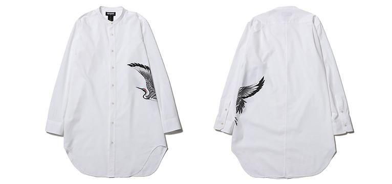 RUDE GALLERY / TSURU SWITCH BAND COLLAR LONG SHIRT(WHT)