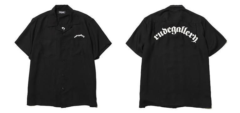 |RUDE GALLERY / ARCH LOGO OPEN COLLAR SHIRT(BLK)