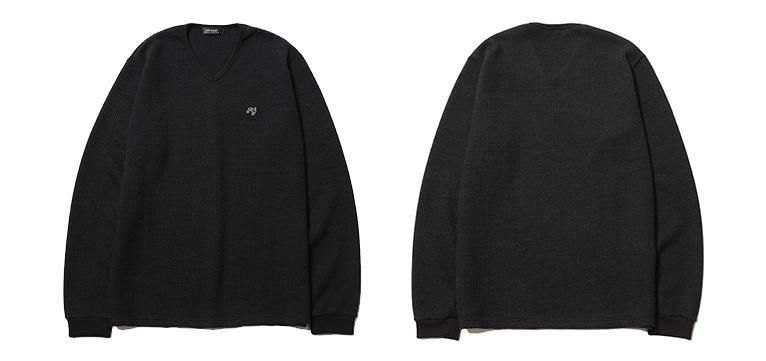 RUDE GALLERY / BASIC V NECK WAFFLE LS(BLK)