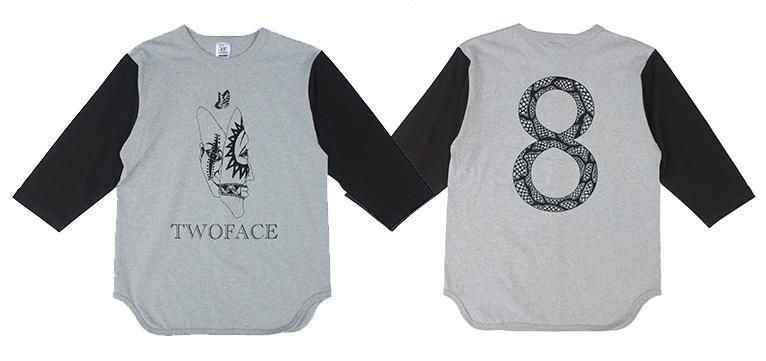 WELD MUSICオフィシャルグッズTwo Face 3/4スリーブベースボールTシャツ。